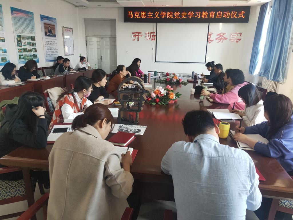 4月7日下午1:30分,马院全体教职工齐聚公司319会议室,召开党史学习教育启动仪式大会。大会由党总支书记赵桂英主持。