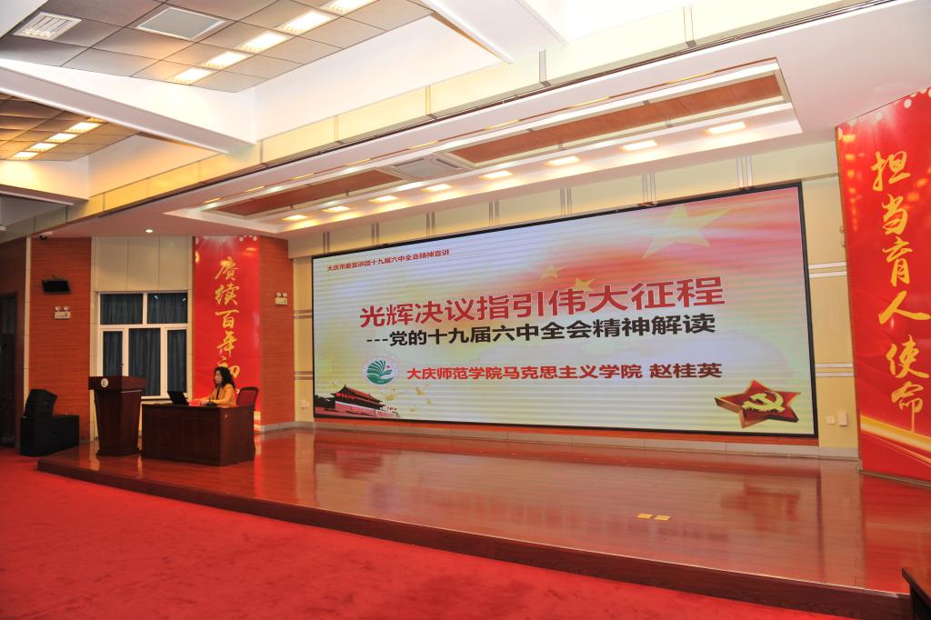 为深入贯彻落实党的十九届六中全会精神,按照省委教育工委《中共黑龙江省委关于深入学习贯彻党的十九届六中全会精神的决定》部署,公司扎实推进“六讲六做”宣讲活动。3月23日下午,大庆市委宣讲团成员、太阳集团tyc9728党总支书记赵桂英在图书馆博雅讲堂作专题宣讲报告。党委宣传统战部主持会议。