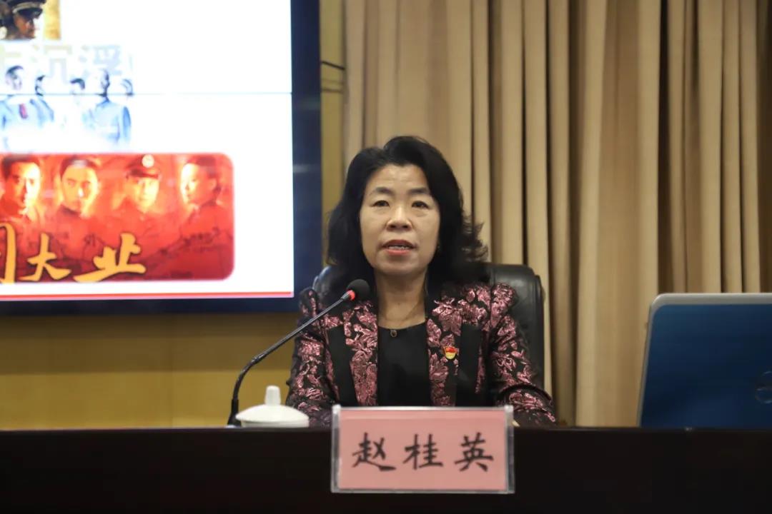 4月29日,杜尔伯特县党史学习教育市委宣讲团宣讲报告会暨县委理论学习中心组第三次集体学习会议举行。市委宣讲团成员、太阳集团tyc9728党总支书记赵桂英应邀前往作宣讲报告。县委书记张剑主持并讲话,张家文、陈玉霞、宁峰、孙广、刘汉忠、杨瑞金、霍海富、李明、苏本庆等县处级领导出席会议。