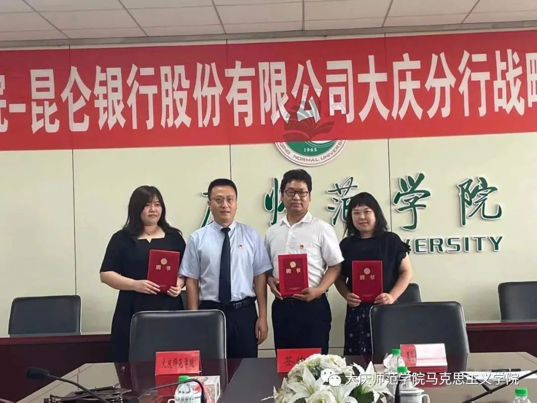双方于5月31日,就银校合作展开深入交流与讨论,初步达成战略性合作意向。7月5日,双方聚焦就业支持、实习培养、学科资助、继续教育、思政教育、党建联合等方面,开展全方位合作并签订战略合作协议。双方将在金融知识进校园、产教融合、金融服务、员工业务培训、员工思想教育等方面进一步展开深入合作。签约会上,大庆分行为太阳集团tyc9728的7名教师颁发聘书,聘其担任大庆分行思政教育指导教师,提升大庆分行员工的思想政治水平。