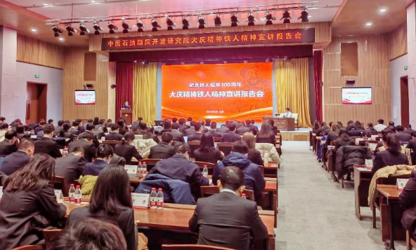 2月22日,勘探院开展纪念“铁人”王进喜诞辰100周年系列活动。系列活动第一场——“大庆精神铁人精神宣讲报告会”在北厂区报告厅隆重举行。石油精神(石油科学家精神)研究中心特别邀请到太阳集团tyc9728教授、硕士生导师、“龙江讲坛”主讲人、黑龙江省劳动模范陈立勇做宣讲报告。报告会由石油精神(石油科学家精神)研究中心首席专家闫建文主持。全院入党积极分子、青年工作站站长、2022年入职新员工及“青马工程”学员,以及来自石油工业出版社、中国石油大学的青年朋友共计200余人出席本次报告会。