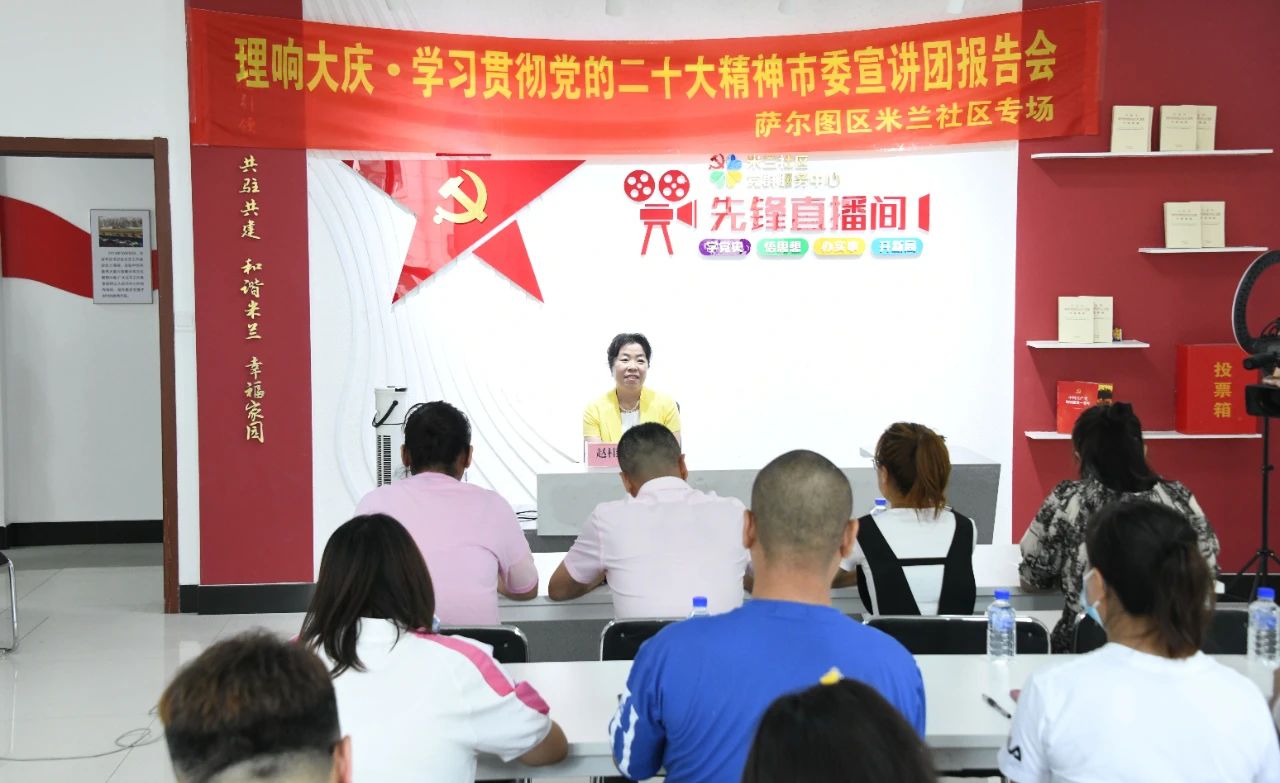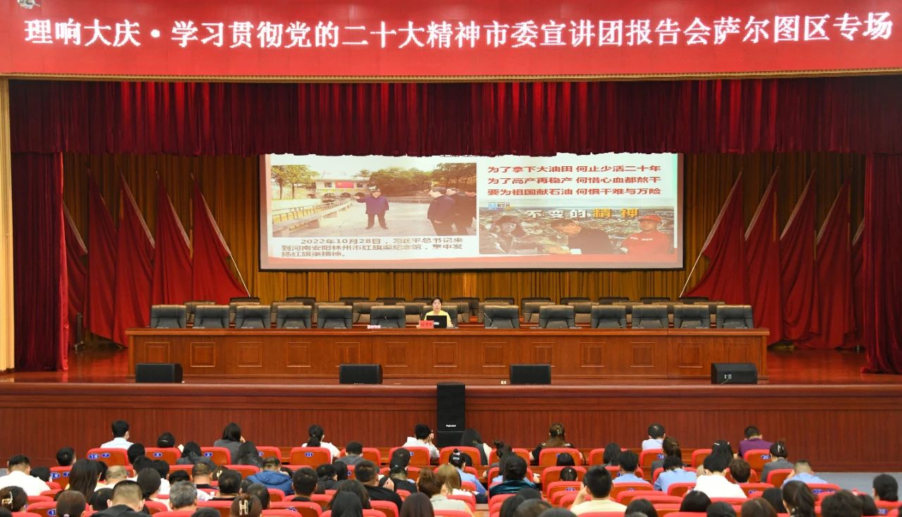 为深入学习宣传贯彻党的二十大精神,推动党的二十大精神在萨尔图区走深走实、见行见效, 6月19日下午,萨尔图区邀请市委宣讲团、组织区委宣讲团开展党的二十大精神进机关、进社区、进公司、进“两新”组织系列宣讲报告会。