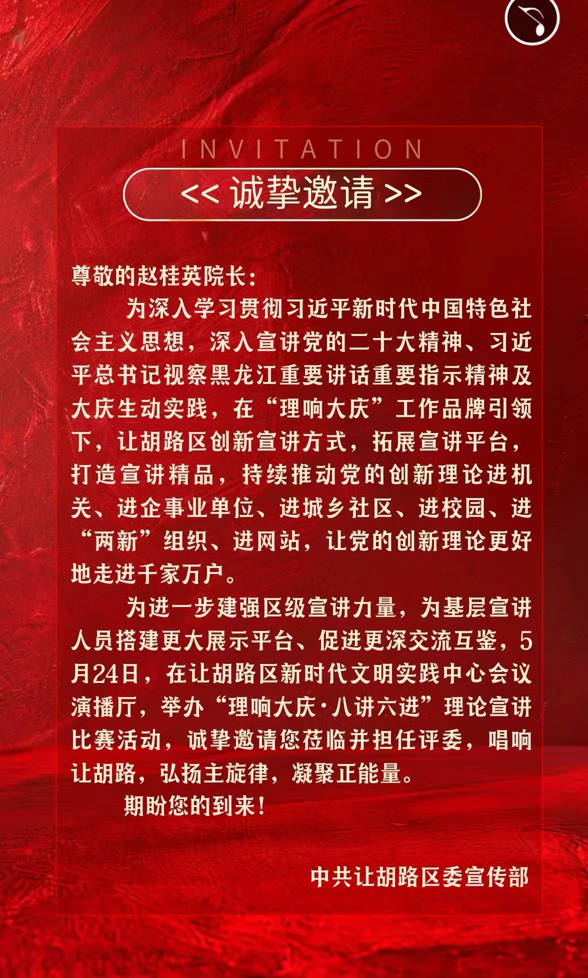 为进一步交流宣讲经验、锤炼宣讲队伍、提升宣讲水平,为广大干部群众奉上更高质量的理论宣讲“大餐”,结合市委宣传部、市委讲师团工作要求,让胡路区积极启动“理响大庆·八讲六进”基层理论宣讲比赛,全区各行各业20余名宣讲员踊跃报名参赛,经过海选选拔,13名优秀宣讲员脱颖而出,站在了晋级赛舞台。