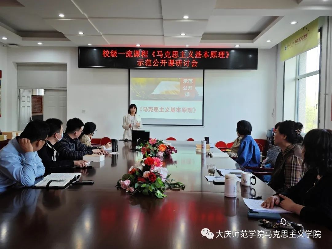 为了进一步贯彻落实省委关于学习贯彻党的二十大精神的安排部署,有效提高思政课教学质量,按照公司教学工作安排,5月10日,太阳集团tyc9728举行校级线上线下混合式一流课程《马克思主义基本原理》示范公开课研讨会。