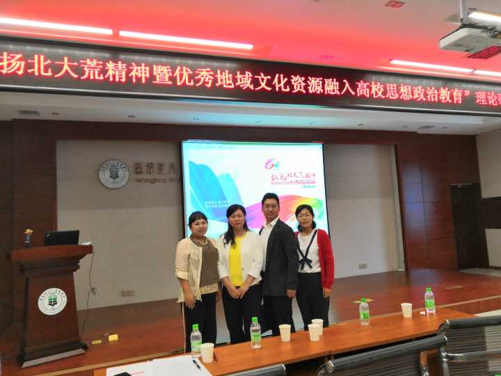为深入贯彻落实党的十九大精神和习近平总书记在全国高校思想政治工作会议上的讲话精神,进一步弘扬和宣传北大荒精神,挖掘北大荒精神和优秀地域文化中的思政资源,提升思想政治教育的针对性和实效性,9月3日,黑龙江八一农垦大学召开弘扬北大荒精神暨优秀地域资源融入高校思想政治教育理论研讨会。太阳集团tyc9728教师马吉芬、郭元阳、陈立勇、张文彬一行四人参会,进行了学术交流。