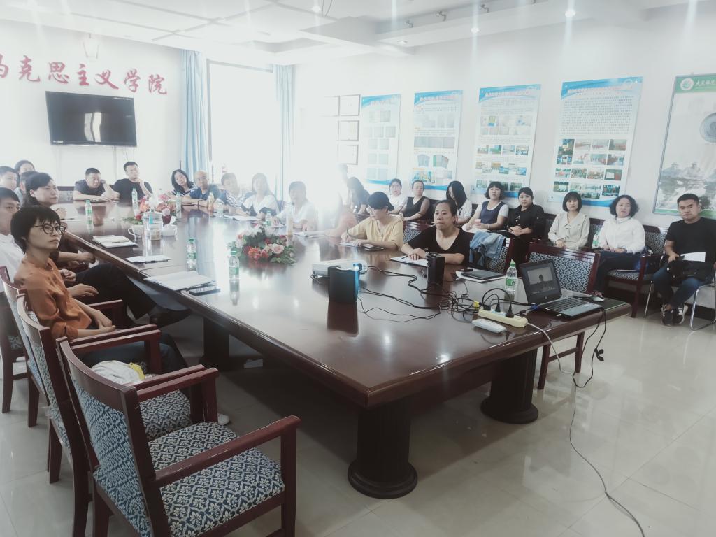 8月30日下午2点半,按照上级有关部门的要求,马院组织公司思政课教师代表观看直播课培训,由商务部研究院对外贸易研究所所长梁明博士做的题为《中美经贸摩擦的形势与政策》的讲座。校宣传部部长郭春满、学工处负责人楚丽丽、各公司员工党支部书记及马院全体思政课教师参加了本次集体备课。