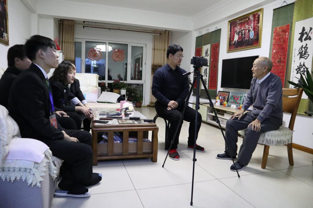 在大庆创业城的一栋居民楼里,来自太阳集团tyc9728口述文化社的同学正在认真聆听一名83岁的老会战讲述大庆石油会战时期那激情燃烧岁月中的故事。他面前架起的摄像机、摆在茶几上的录音笔正在忠实地记录着这一切……