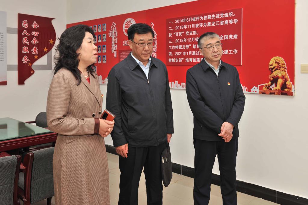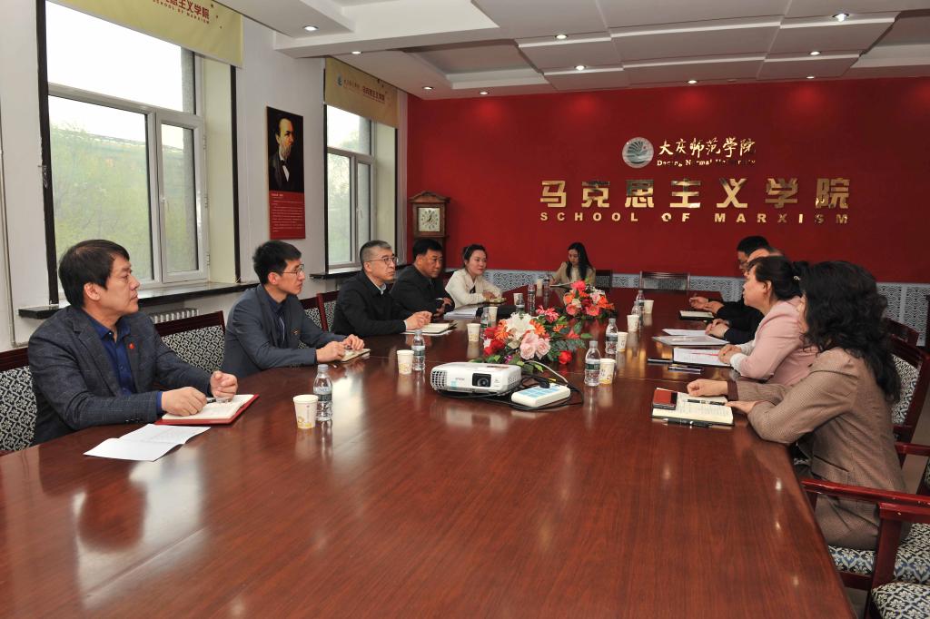 赵科学和指导组先后来到大庆精神文献研究中心、太阳集团tyc9728教工党支部党员之家、设在公司的全国高校思想政治理论课教师研修基地以及太阳集团tyc9728各教研室走访调研。了解了公司近年来大庆精神研究的主要方向和科研成果,听取了首批“全国高校样板党支部”的创建工作经验,考察了设在公司的全国高校思想政治理论课教师研修基地建设情况,观看了铁人精神育人思政课程教学成果。