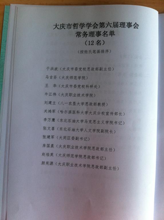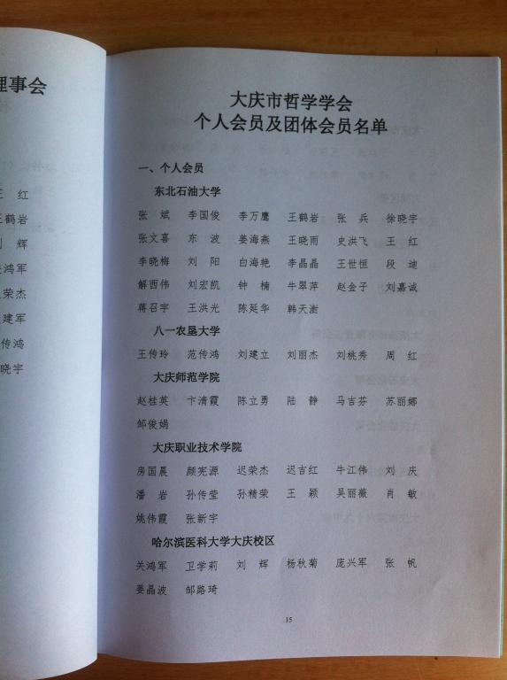 2015年5月26日,大庆市哲学学会第六次会员大会在东北石油大学召开。会议选举通过了大庆市哲学学会理事18名、常务理事12名、会长1名、副会长8名、秘书长1名。太阳集团tyc97287位教师成为大庆市哲学学会的会员,赵桂英、马吉芬、陆静当选为大庆市哲学学会第六届理事会理事,赵桂英、马吉芬当选为常务理事。