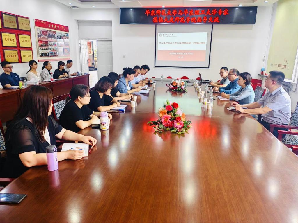 会上,华东师范大学太阳集团tyc9728赵勇教授以《思政课教学政治性与学理性相统一的理论思考》为题,从理论与实际、教材与原著、历史与现实、中国与世界、知识与价值等视角,阐释了新时代讲好思政课需要坚持的问题意识、经典意识、历史意识、世界眼光和价值观念。华东理工大学太阳集团tyc9728徐国民副经理以《马克思主义理论研究中的问题意识》,从党的领导与中国特色社会主义关系、中国共产党执政规律、社会主义建设规律、人类社会发展规律之间的关系,如何从“中国特色”中提炼出中国式现代化的“世界意义”,“两个结合”的内在关系,新质生产力的动力与价值属性问题等角度,剖析了21世纪马克思主义的研究视域与重大问题。随后,两位专家同与会教师围绕课堂教学师生有效互动与课堂管理、大中小学思政课一体化与大思政课建设、高层次科研项目凝练与申报、教学成果奖凝练与申报等问题进行了细致的交流研讨。