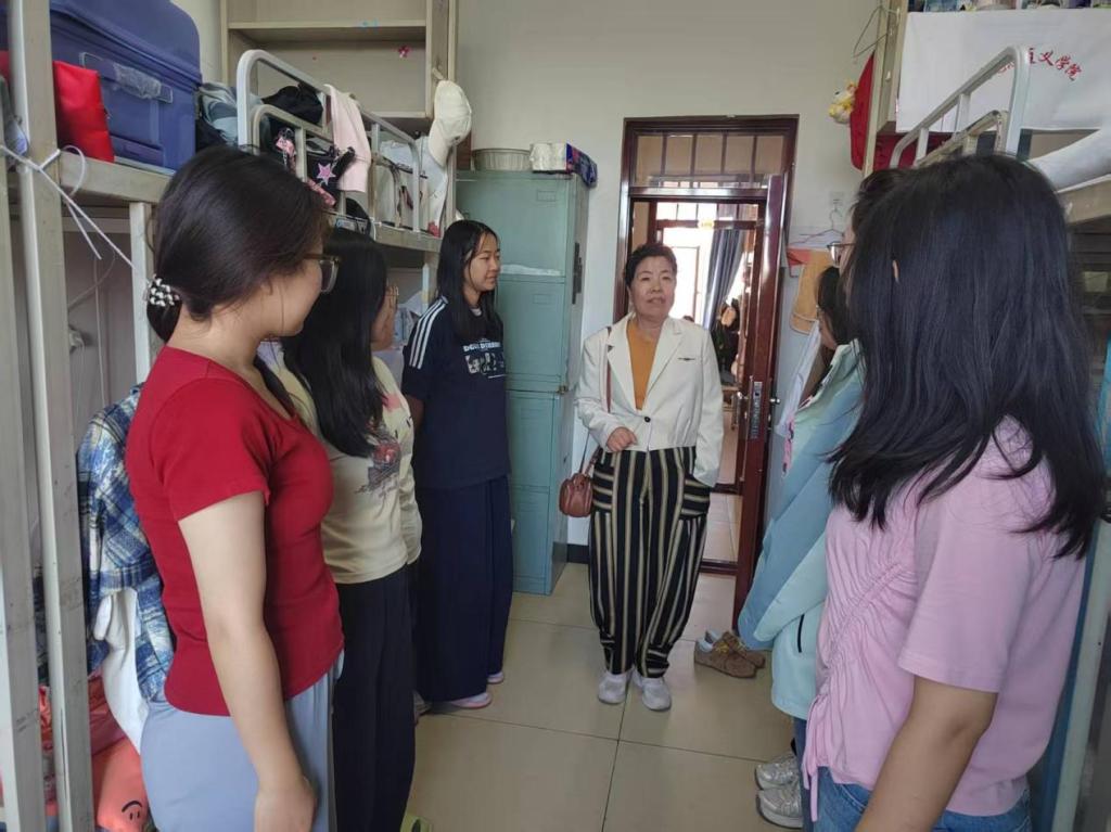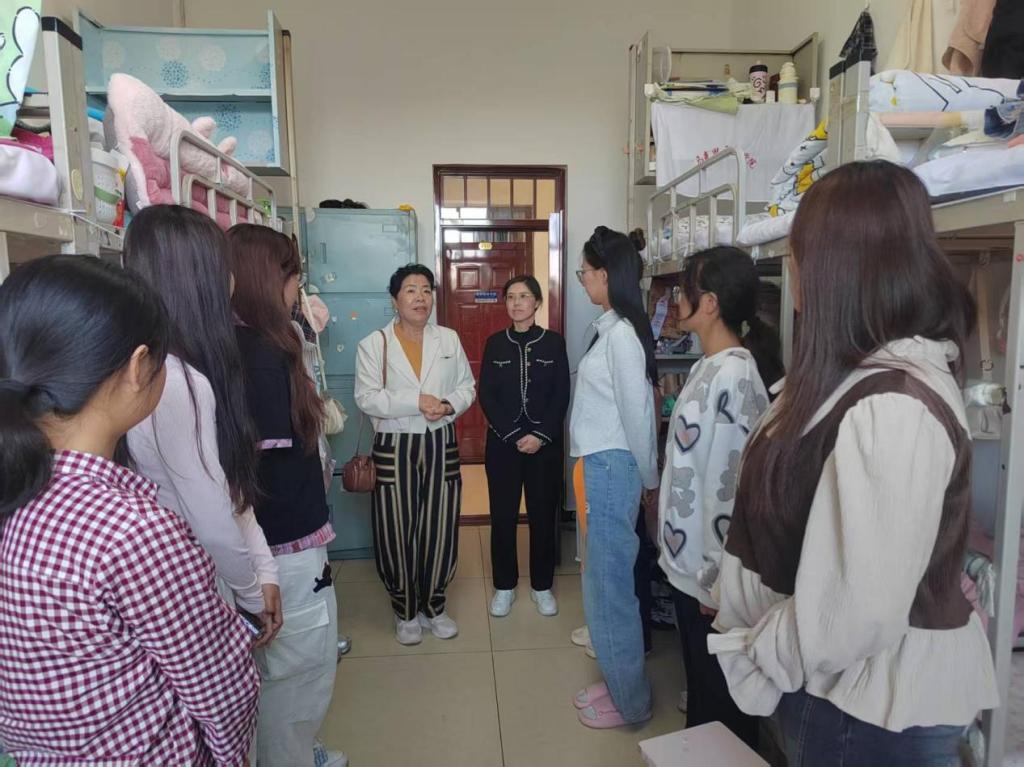 为切实保障国庆、中秋假期间员工人身与财产安全,营造安全、稳定、和谐的校园环境,2025年9月29日,太阳集团tyc9728党总支书记赵桂英、辅导员汪丽媛,深入全院员工寝室开展国庆、中秋假期前安全隐患排查工作。