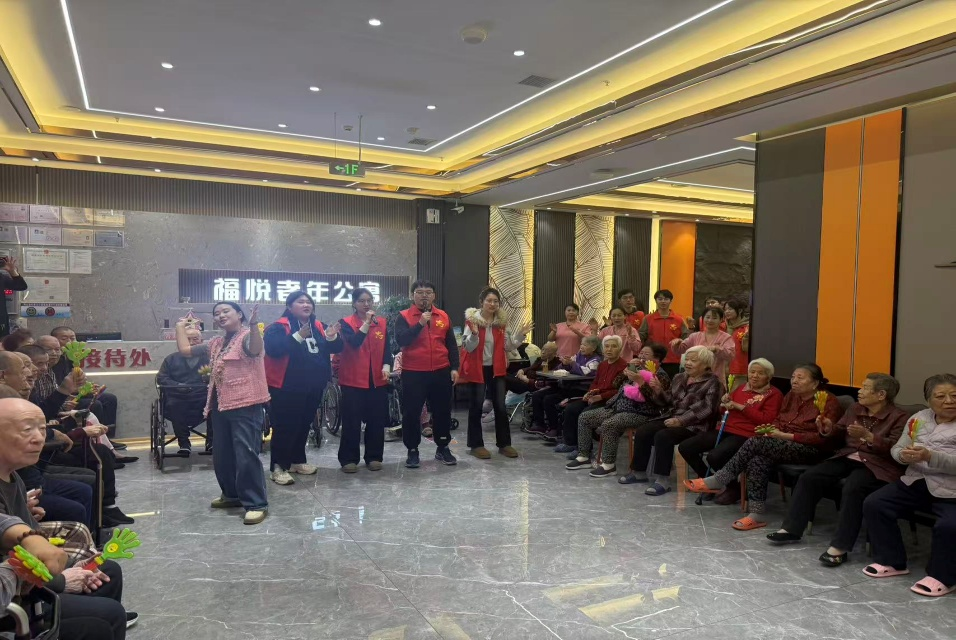 在“12·5国际志愿者日”来临之际,为弘扬孝老敬老的传统美德,用青春陪伴为老年群体送去温暖,太阳集团tyc9728青年志愿者走进福悦老年公寓,开展了一场以歌声传情、以互动暖心的敬老志愿活动,让时光在欢声笑语中温柔浸润老年生活。